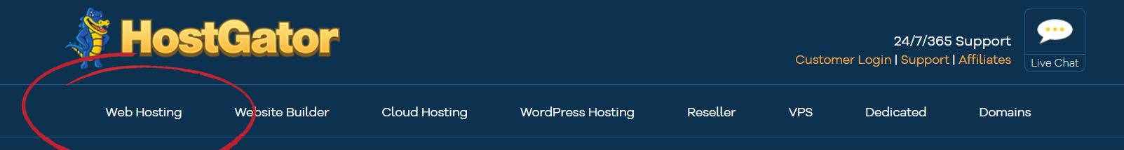 Step One: Click the Web Hosting Link in the menu (navigation)