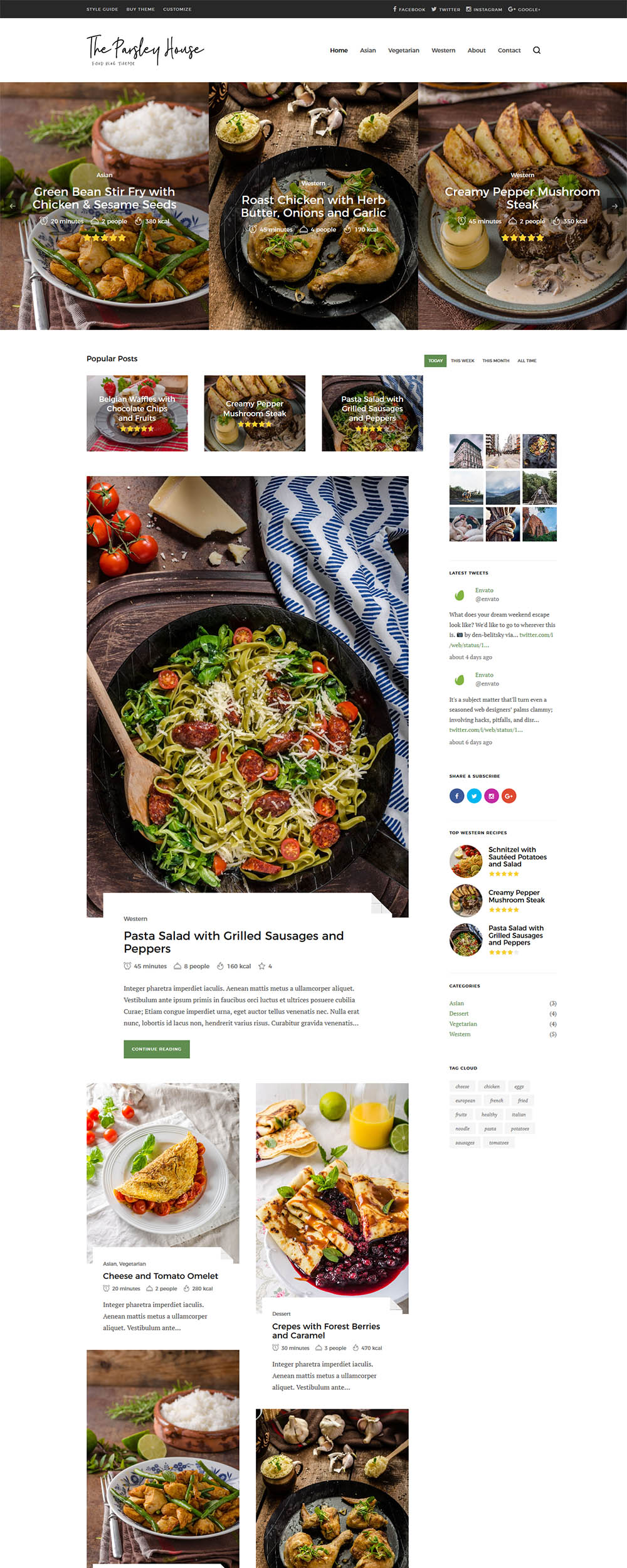 Parsley is a clean, modern and responsive personal blog theme for daily bloggers and cooking enthusiasts. Completely integrated with the all time popular WP Recipe Maker plugin, you can establish a brand new recipe sharing blog, or give your already running recipe blog a face lift.