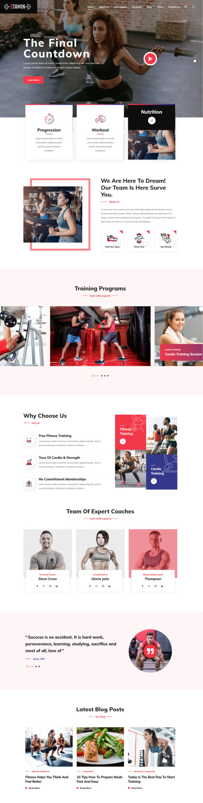 Stamin is a Fitness and Gym WordPress Theme designed exclusively for Gyms, trainers, and fitness professionals that work on any number of screen sizes. The theme comes with classy home layouts and inner page demos, all of which can be customized as required to be made for the fitness industry. You can design a professional-looking site with zero codings experience with vividly colorful and flexible options.